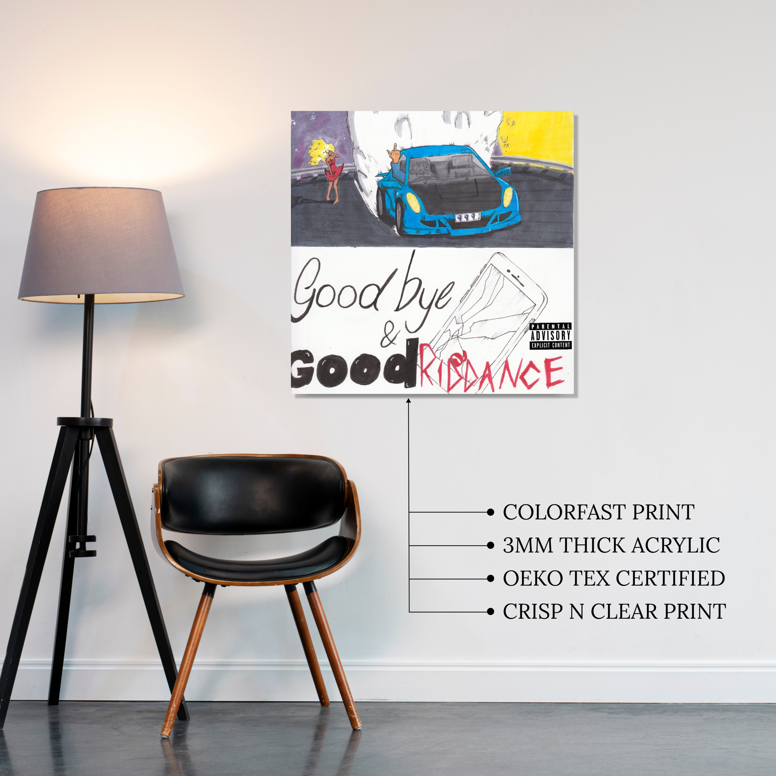 Crafted from high-gloss, OcoTech-certified acrylic, the finish looks premium, scratch-resistant, and incredibly vibrant. The panels are lightweight and stick effortlessly to any wall, making them perfect for upgrading bedrooms, studios, gaming setups, or creative corners. A simple, stylish way to bring your music taste to life—no frames, no drilling, just instant aesthetic.